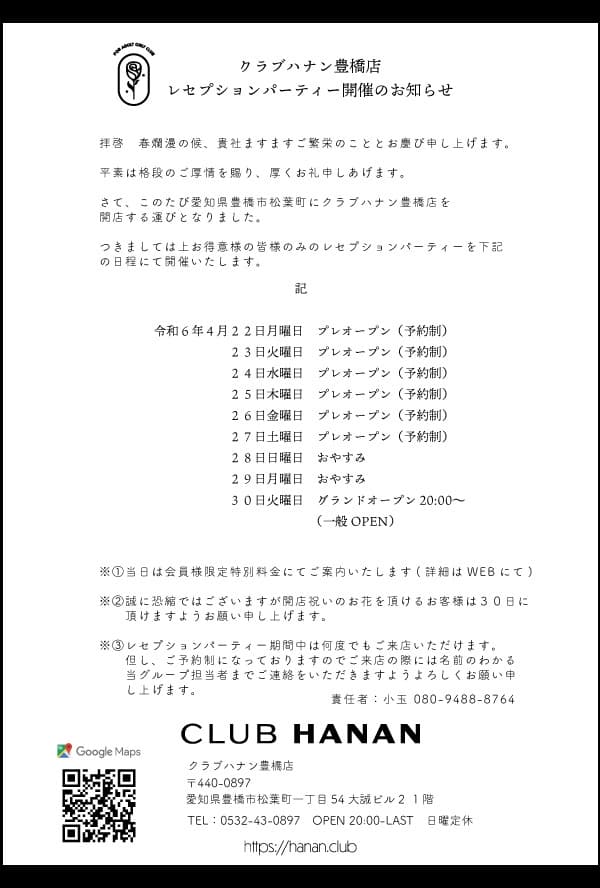 クラブハナン豊橋プレオープンのお知らせ